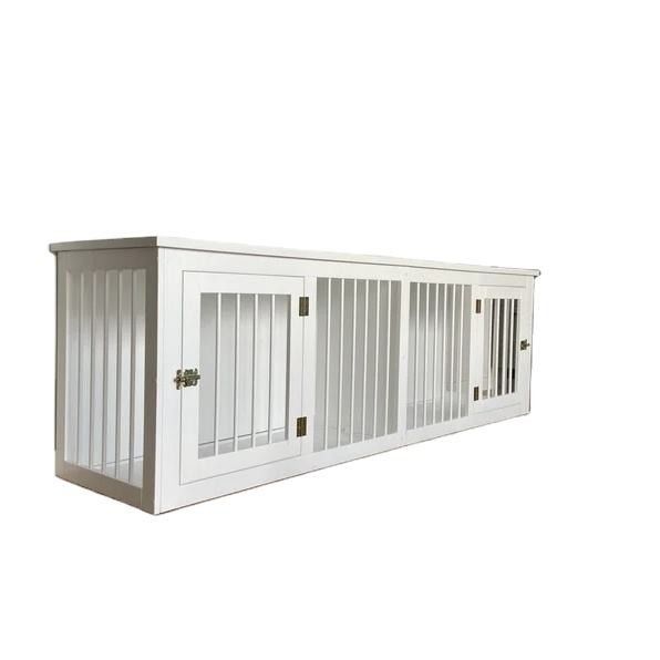 Double Door Kennel kayu buatan tangan kandang anjing Furnitur Rumah Hewan Peliharaan Kayu