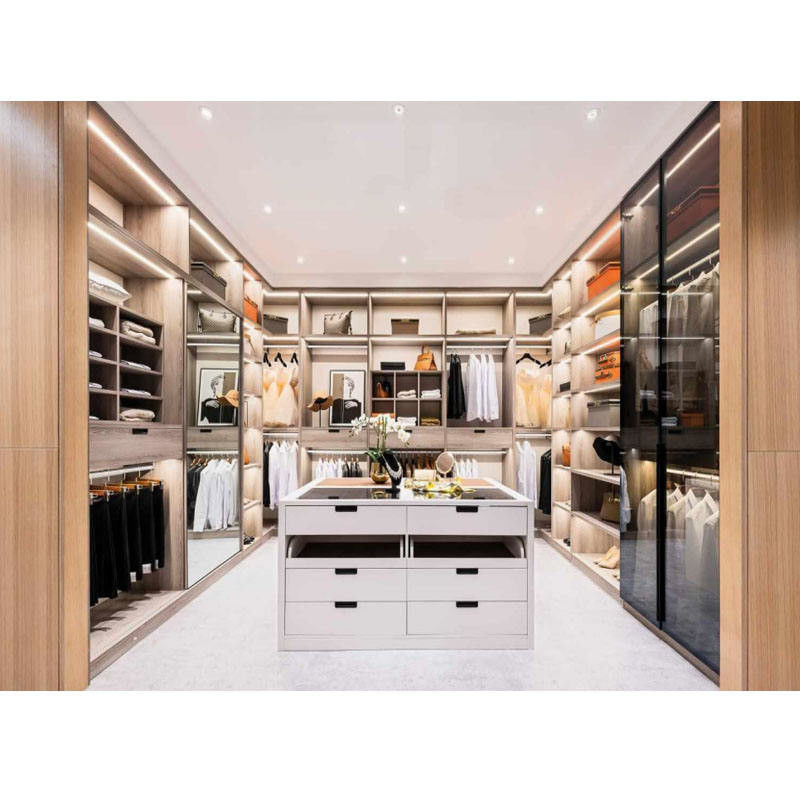 Kustomisasi yang Dipersonalisasi: Untuk memenuhi kebutuhan unik setiap pengguna, kami menawarkan opsi penyesuaian yang dipersonalisasi untuk walk-in wardrobe.Anda dapat menyesuaikan sesuai dengan preferensi dan ruang tamu Anda, menjadikan lemari pakaian menyatu sempurna dengan gaya rumah Anda.