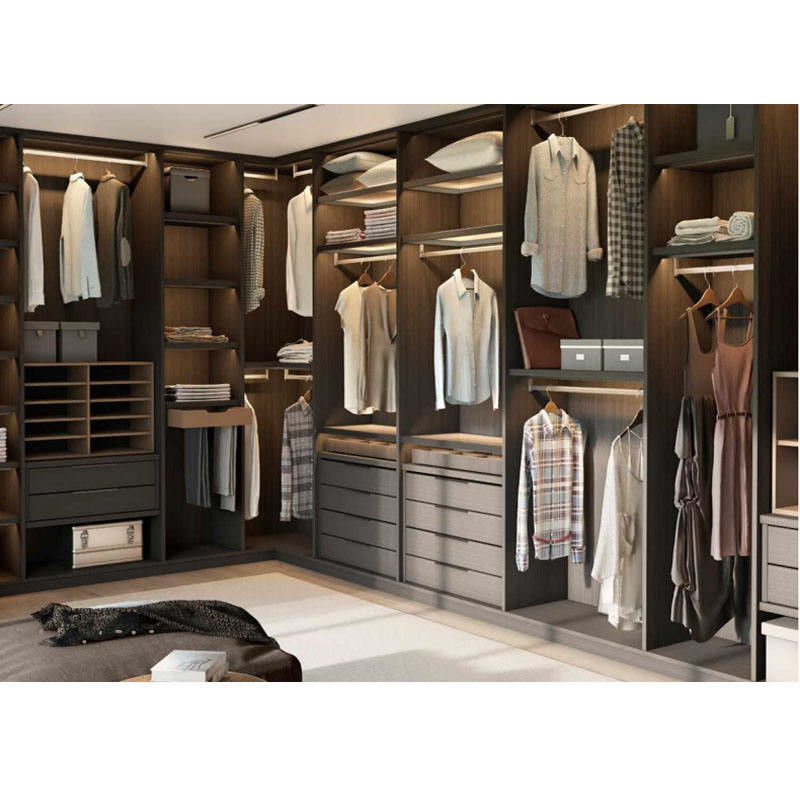 Furnitur panel buatan Cina dengan kabinet veneer berlapis, lemari pakaian walk-in