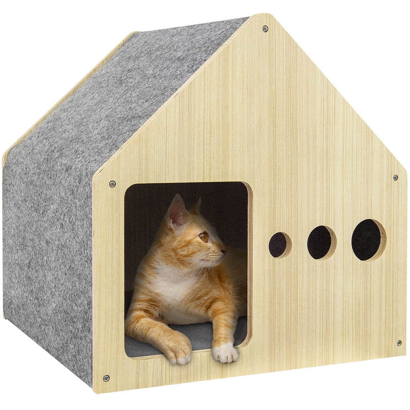 Perabot Hewan Peliharaan Kayu Tempat Tidur Tenda Sarang Kucing Kayu adalah perabot yang bergaya, nyaman, dan serbaguna untuk kucing untuk menyediakan tempat berlindung yang hangat bagi kucing Anda.Sekarang mari kita lihat berbagai komponen produk dan beragam skenario aplikasinya: