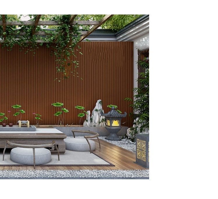 Area rekreasi luar ruangan: WPC grille kelongsong kayu luar ruangan dapat digunakan untuk membuat area rekreasi luar ruangan, seperti halaman, teras, taman, dll. Kelongsong kayu menghadirkan alam dan kehangatan ke area rekreasi luar ruangan, memungkinkan Anda menikmati waktu luang di luar ruangan.