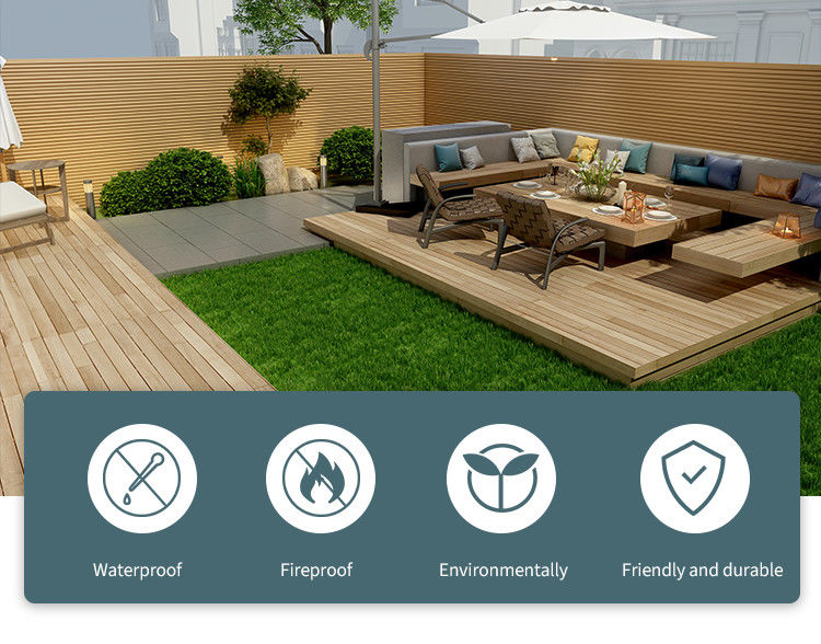 Desain kisi-kisi: Panel kelongsong kayu luar ruangan biasanya dirancang dengan kisi-kisi, menjadikannya bahan dekorasi dinding yang dekoratif dan berventilasi.Desain gril menambah lapisan visual pada dinding, menjadikan bangunan lebih modern dan bergaya.