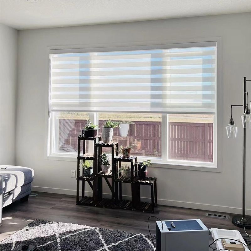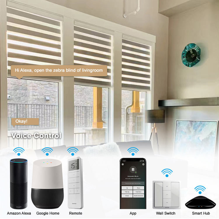 Ukuran Khusus Blackout Cordless Motorized Window Curtain Shade Double Layer Smart Zebra Blinds