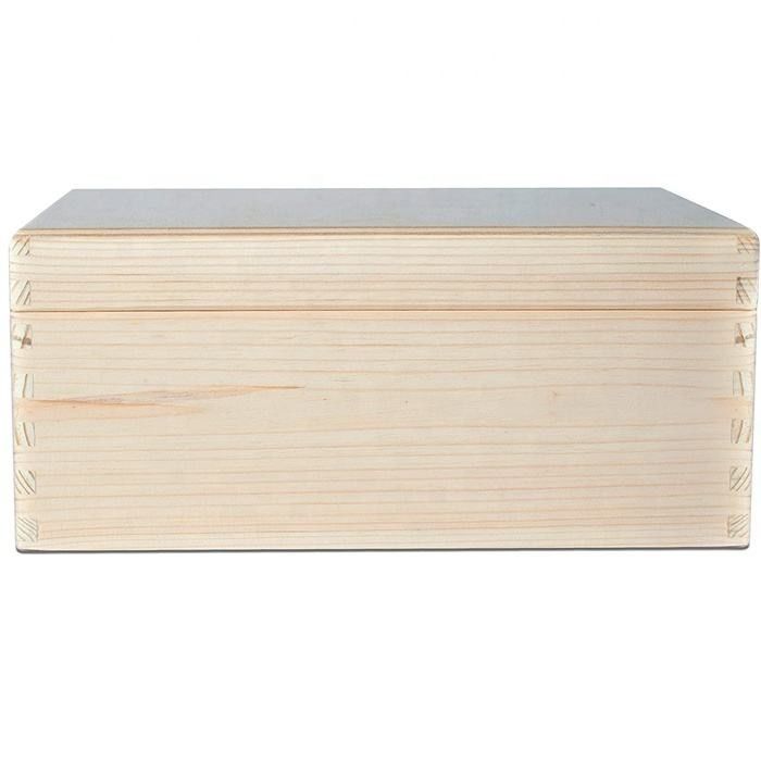 Kustom Besar Penyimpanan Kotak Kayu Mainan Kenang-kenangan Kayu Polos dengan Tutup dengan Pegangan Kotak dada yang tidak dicat kotak hadiah kayuPenyimpanan yang indah