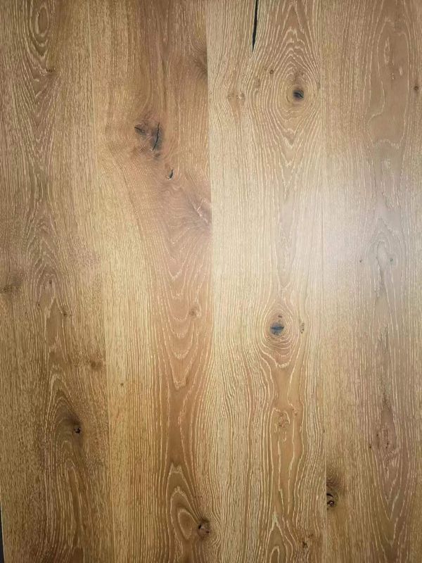 Lantai kayu ek yang direkayasa adalah bahan lantai berkualitas tinggi yang populer karena penampilan dan daya tahannya yang elegan.Lantainya terbuat dari beberapa lapisan kayu ek laminasi, lapisan atas adalah permukaan kayu ek padat, dan lapisan bawah terbuat dari kayu yang direkatkan silang untuk stabilitas dan ketahanan aus yang lebih baik.Oak adalah kayu yang keras dan tahan lama dengan tekstur alami dan warna-warna indah yang menambah suasana alami dan ramah pada ruangan Anda.