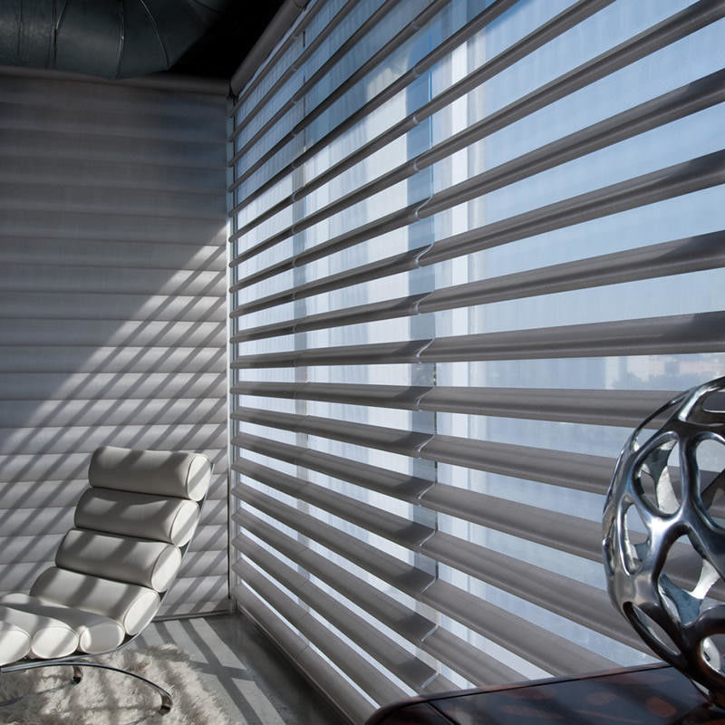 Ruang kantor komersial: Daun jendela elektrik bergaris gaya Shangri-La juga cocok untuk Ruang kantor komersial seperti gedung perkantoran, ruang rapat, dan ruang pamer.Pola garis-garisnya yang canggih melengkapi lingkungan bisnis modern dan melengkapi ruang kantor.