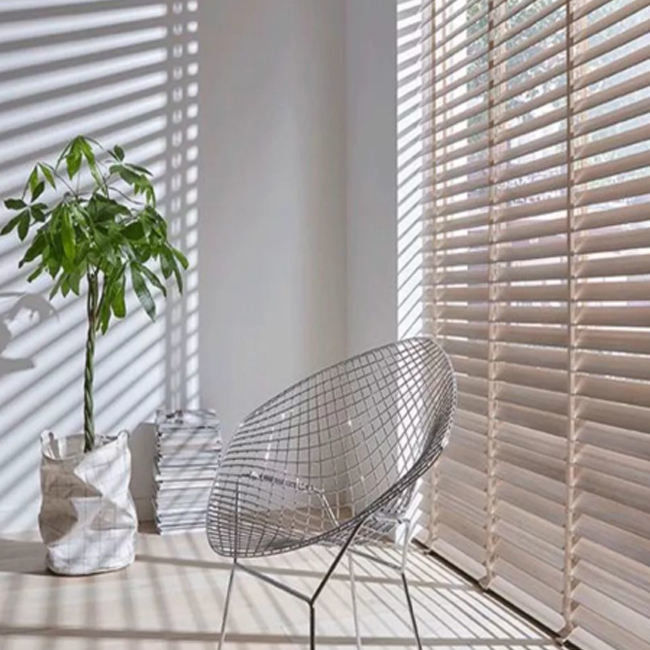 Tirai vinil yang dijalin dgn tali terbuat dari PVC komposit, membuatnya sangat tahan lama.Bahan kami tidak beracun, teruji UV untuk ketahanan pudar dan tidak mudah melengkung, terkelupas, atau retak.Daya tahan kerai kayu tiruan membuatnya ideal untuk area dengan kelembapan tinggi dan sinar matahari langsung, seperti kamar mandi dan ruang berjemur.