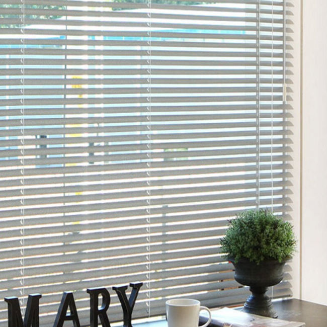 Mudah dipasang interior vertikal tahan warping pvc faux wood venetian blinds pvc shutter blinds